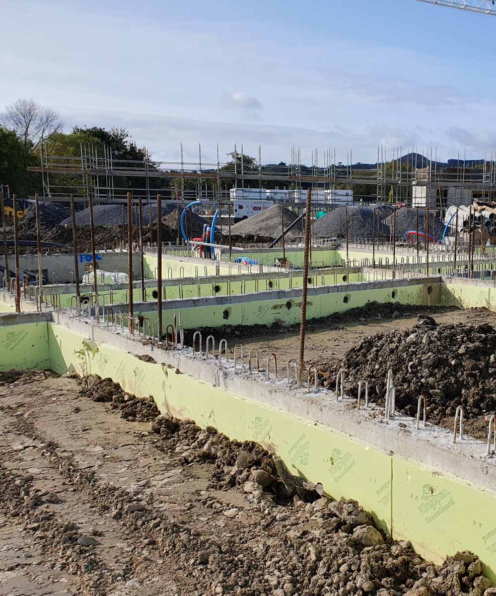 Walls Construction won the tender. Contracts manager Peter McKenna confirms that the company had not built passive before, and that the passive standard airtightness target was probably the most daunting of the targets set before them.