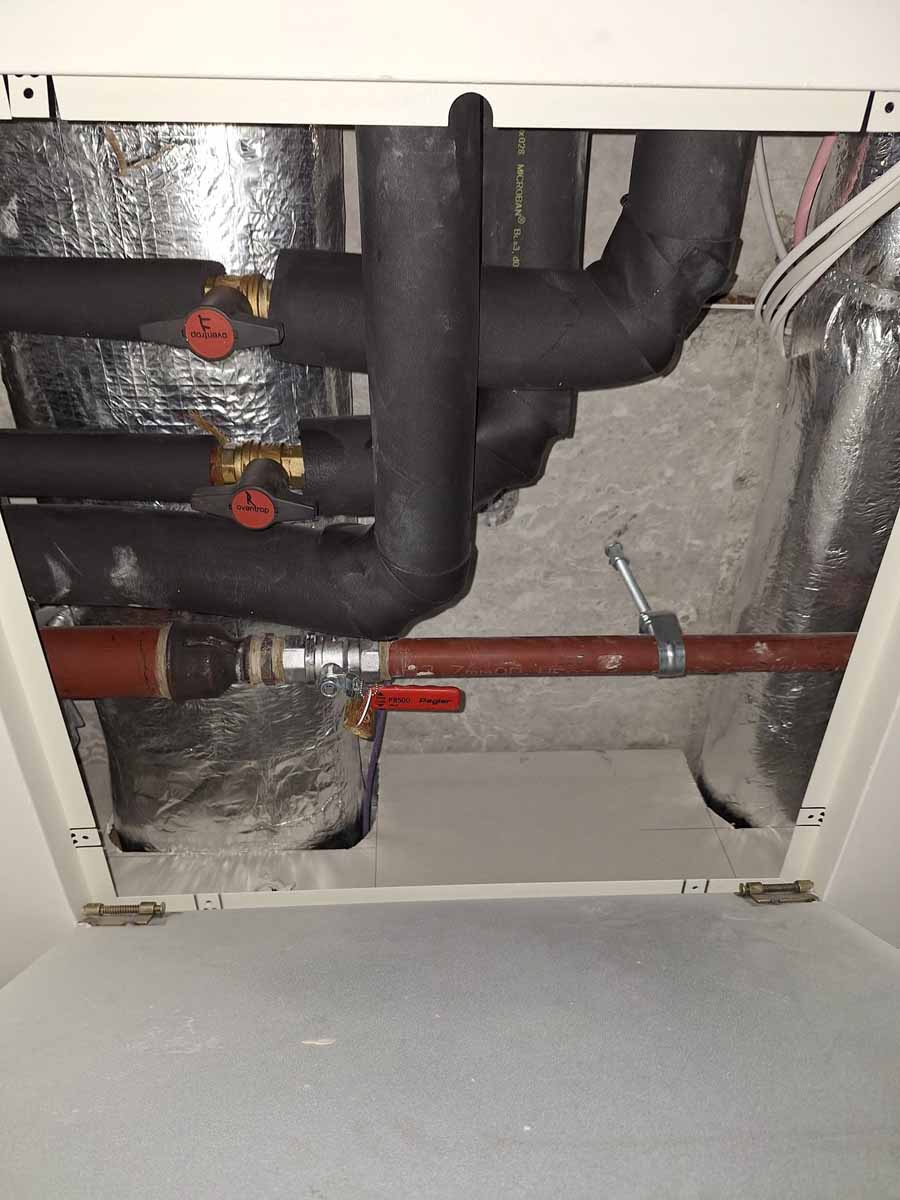 Insulated pipework at the access hatch