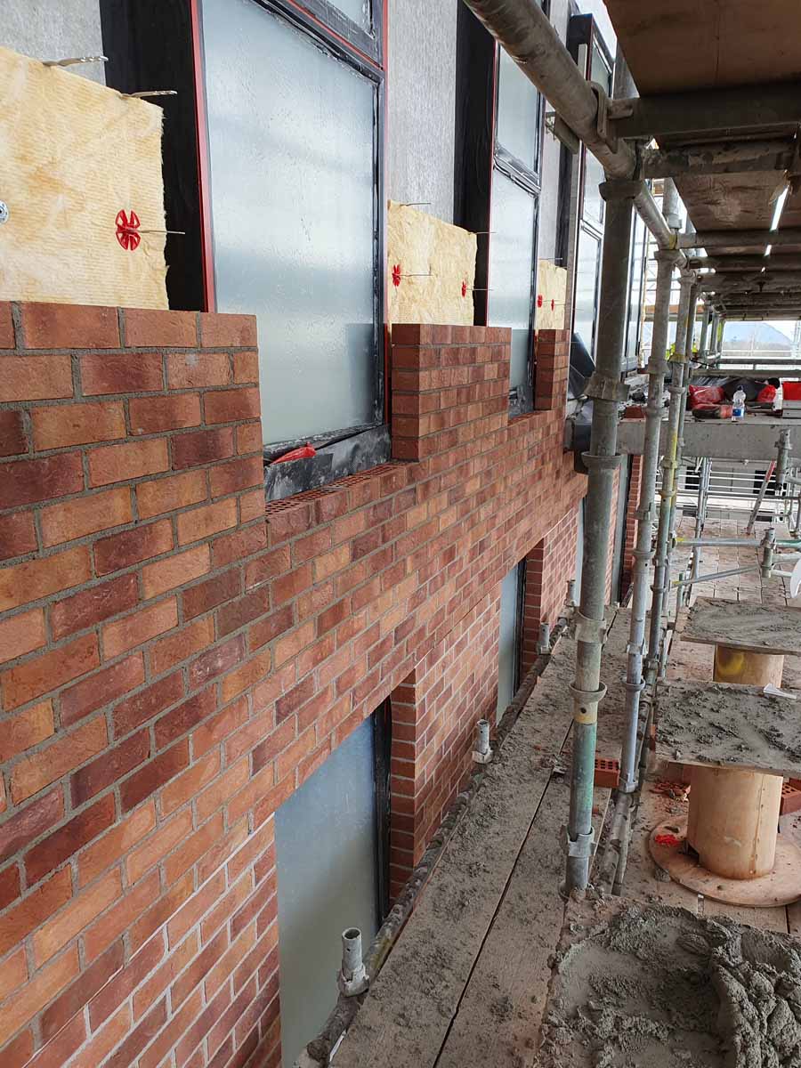 Facade build-up, a brick external leaf is added