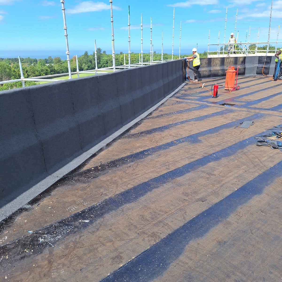 To prevent thermal bridging at the junction of where the external walls meet the roof, the parapet was highly insulated and finished, prior to the sedum layer being installed.