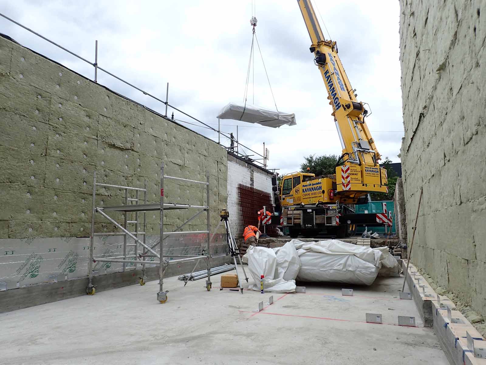 Being the second last build in this row of Portobello terraces, Lowe and his team had the advantage of easy right-side access from the last remaining site, which was just as well as the CLT panels that made up the walls are massive. Another benefit was obtaining permission to store the panels on top of a nearby garage until they were ready to go up.