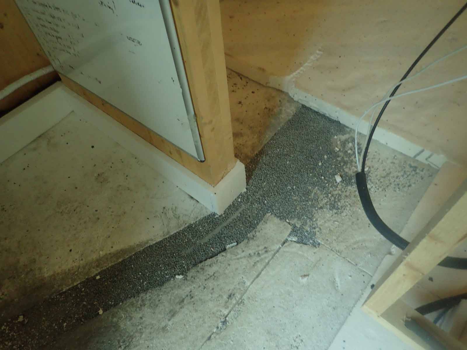 Detail of ground floor EPS build-up with microbead insulating screed fill around service pipes