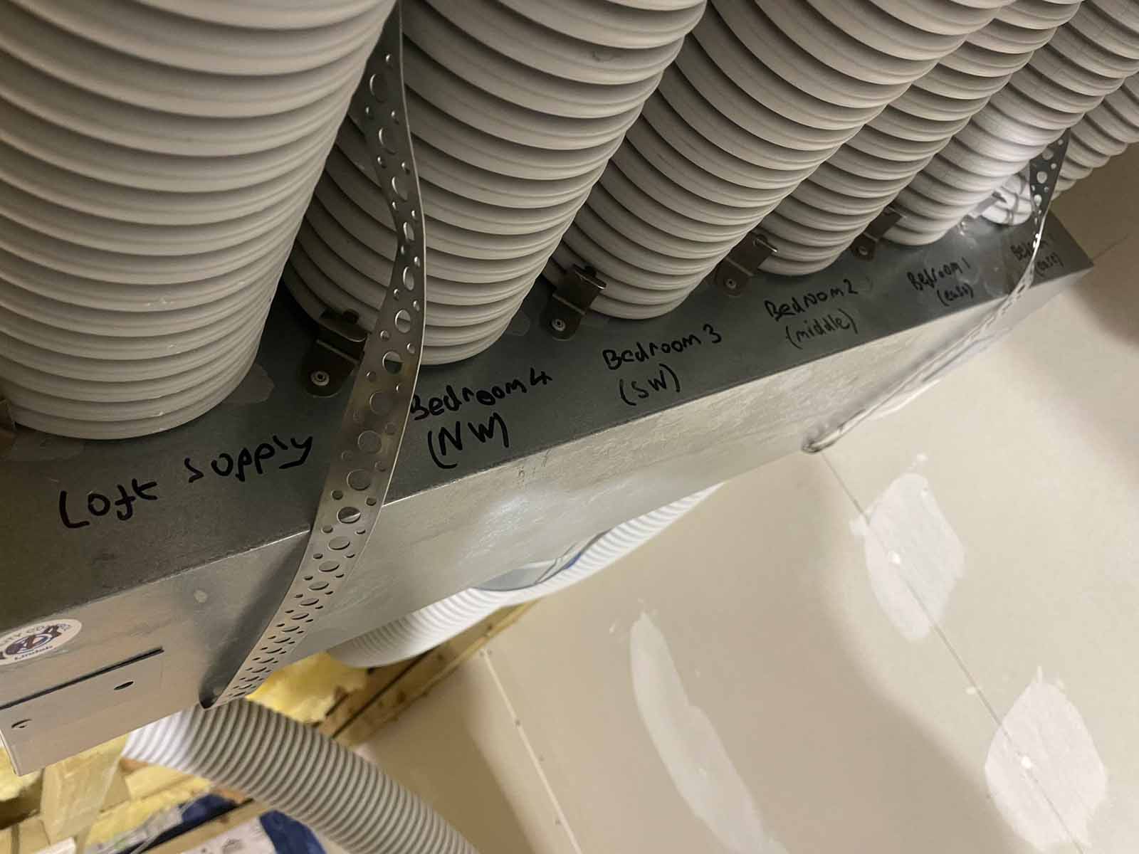 Ducts labelled at manifold in case of future cleaning and maintenance needs