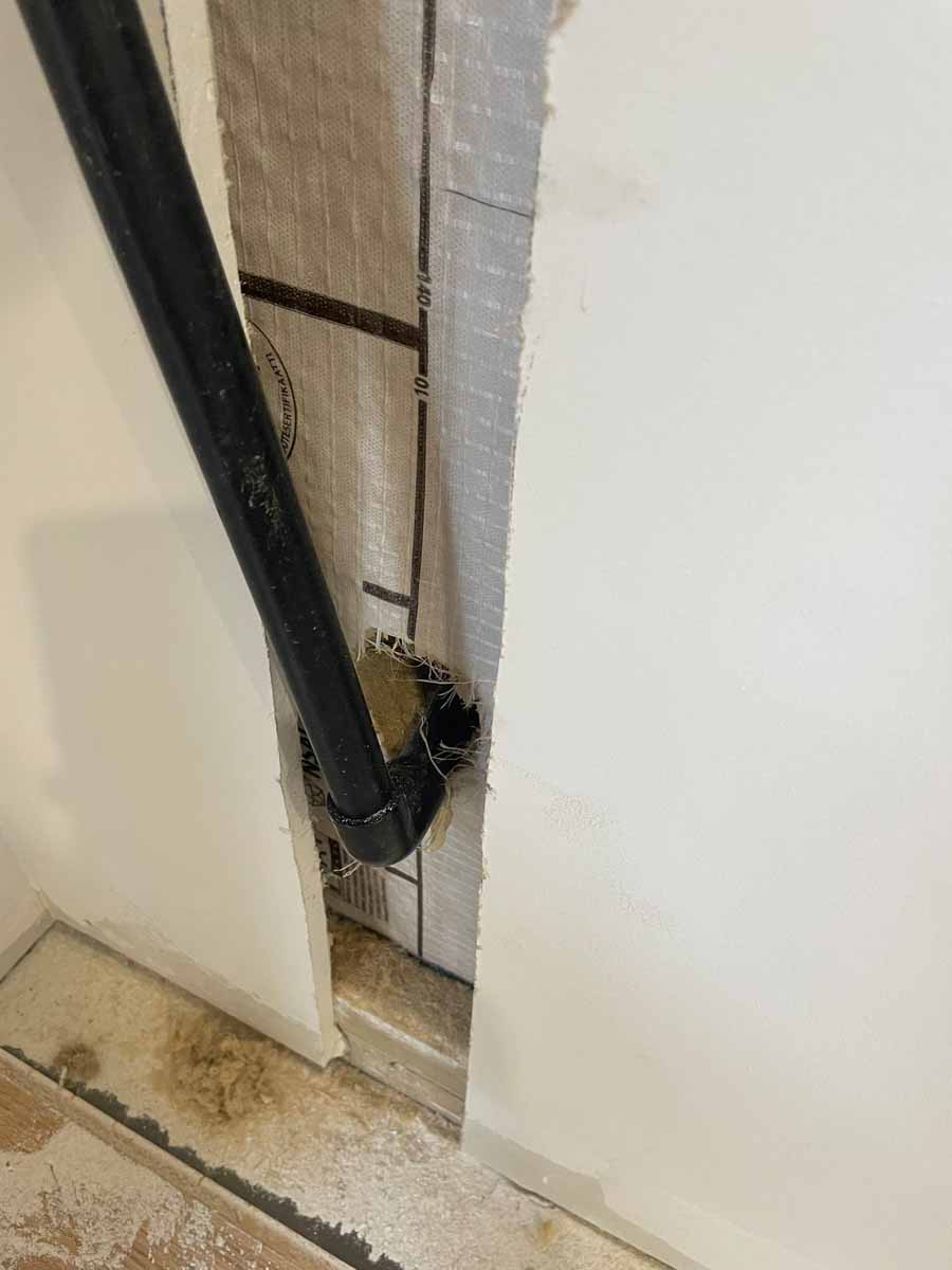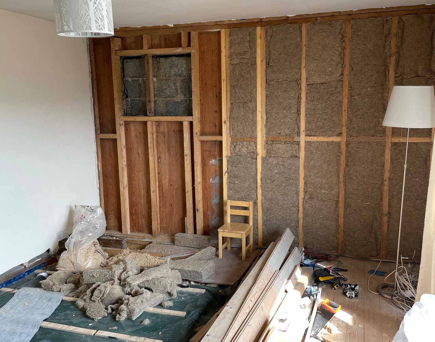Existing timber frame ground floor wall fitted with 100 mm Thermojute insulation