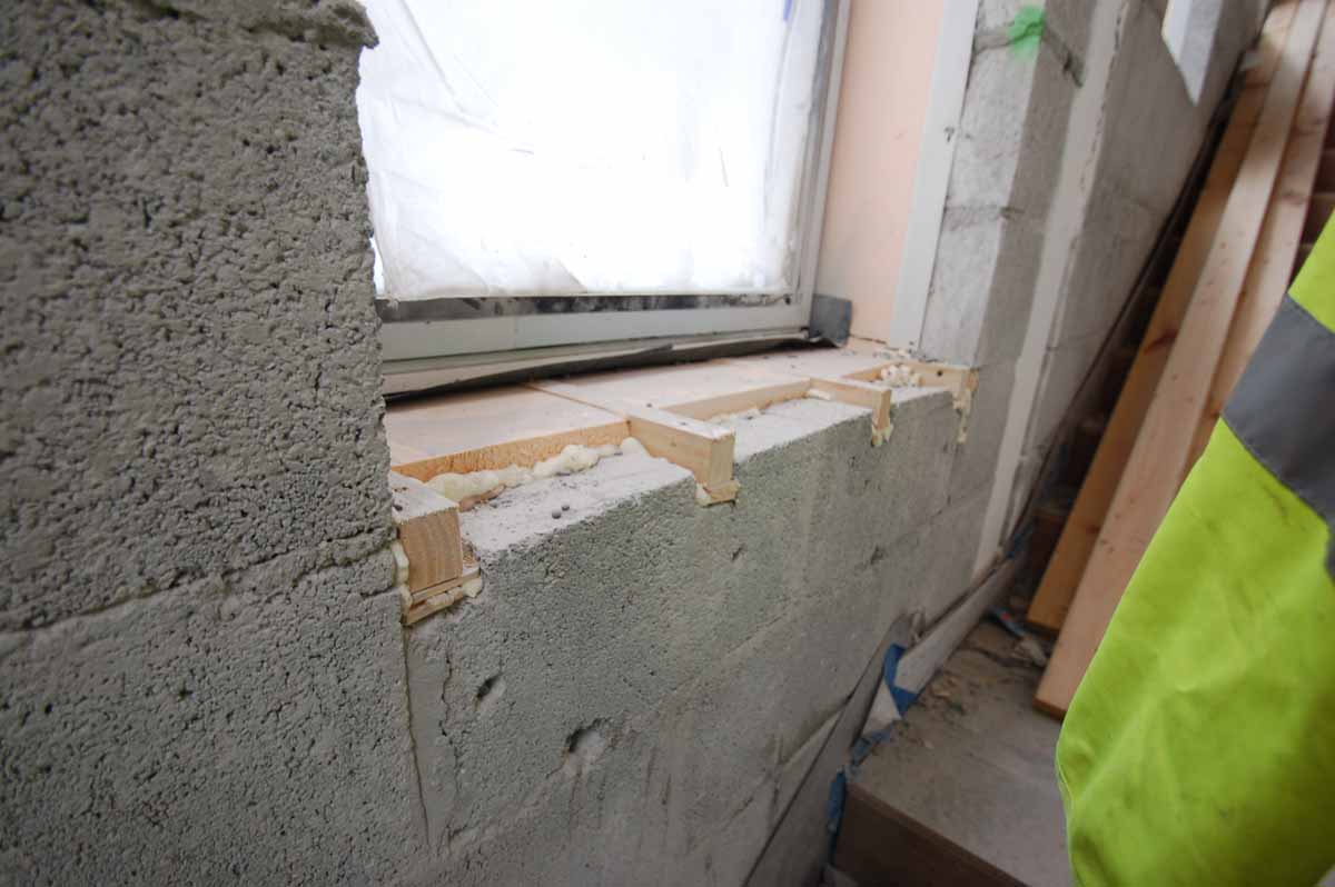The principle walls of the new building feature two leafs of 100mm blockwork, with a 250mm cavity insulated with bonded polystyrene bead, and Gyproc Airtite plaster internally. Cavities were also created by constructing single leaf blockwork walls 250mm from the party walls, and again insulating with bonded bead. In all cases, Ancon Teplo thermal bridge free walls ties were used to bridge the cavities