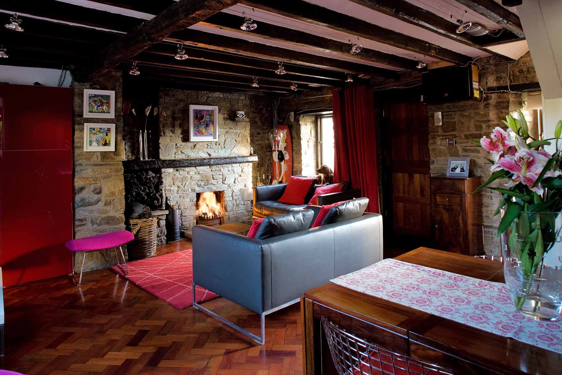 An airtightness membrane was carefully taped at all junctions, and a 50 mm insulated plasterboard layer was cross-fixed beneath the rafters before being skimmed. The loft received a further 300 mm of blown Ecocel cellulose insulation on top of the existing 120 mm between the rafters. The walls of the 1980s extension were internally insulated with Gutex Thermaroom breathable woodfibre insulation. A high-efficiency 87 per cent rated stove was installed in the sitting room to replace the back boiler.