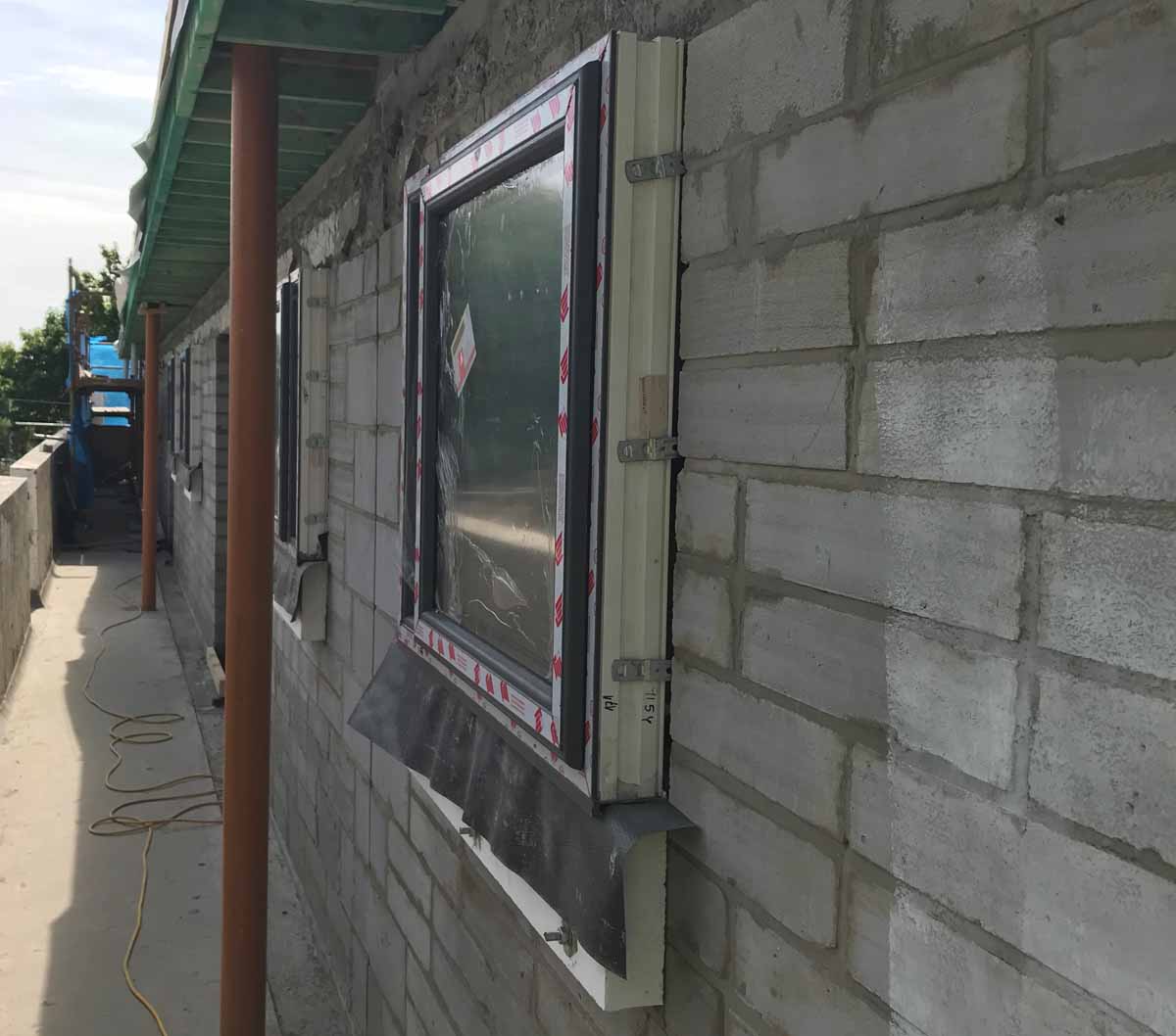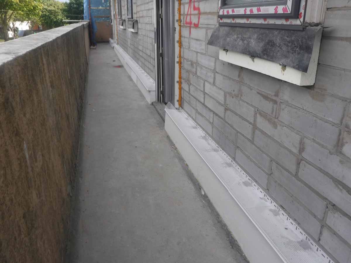 Compacfoam thermal breaks were installed as structural support under windows, with aluminium starter track for the external insulation layer Compacfoam thermal breaks were installed as structural support under windows, with aluminium starter track for the external insulation layer