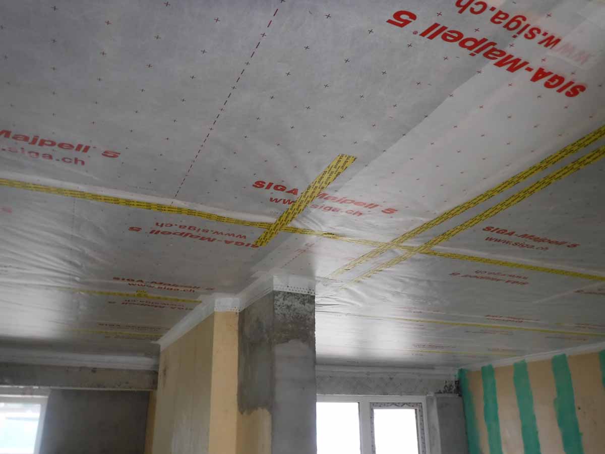 Siga membrane and tapes to ceiling Siga membrane and tapes to ceiling